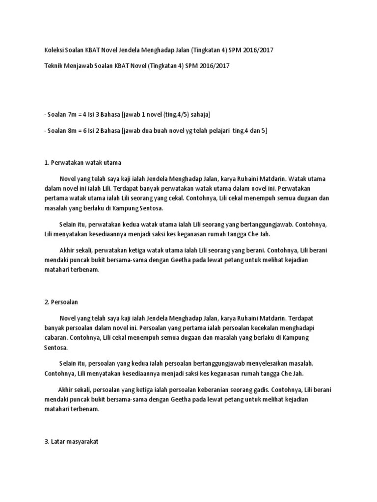 Nota novel jendela menghadap jalan : Antologi kuingin berterima kasih ini akan digunakan mulai tahun 2015 hingga 2019. Berikutnya nota novel ini termasuk tema, persoalan, sinopsis, latar, watak perwatakan, plot, teknik plot, nilai dan pengajaran. Baca versi flipbook dari nota komsas tingkatan 4. Pulau pinang, perlis, perak, kedah: